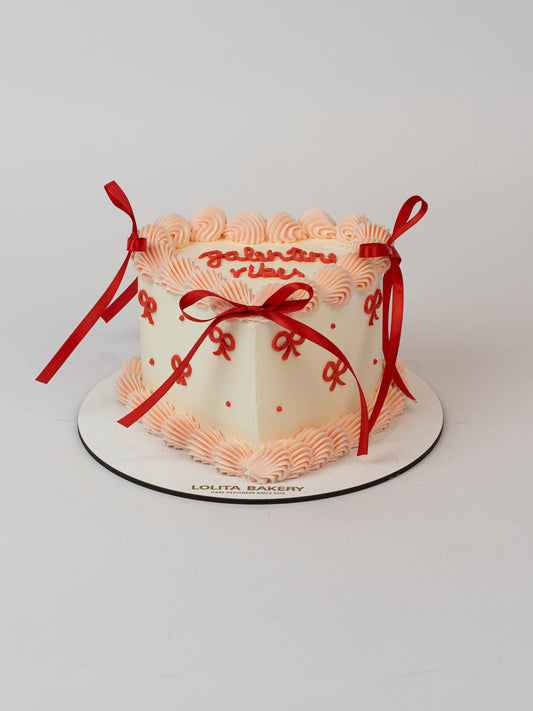 Precio habitual Desde 47.00 €Precio de ofertaPrecio habitual Desde 47.00 €Precio unitario / porPastel corazón Galentine con lazos rojos, personalizable con mensaje y sabores a elegir. Pastelería artesanal hecha en Barcelona. -