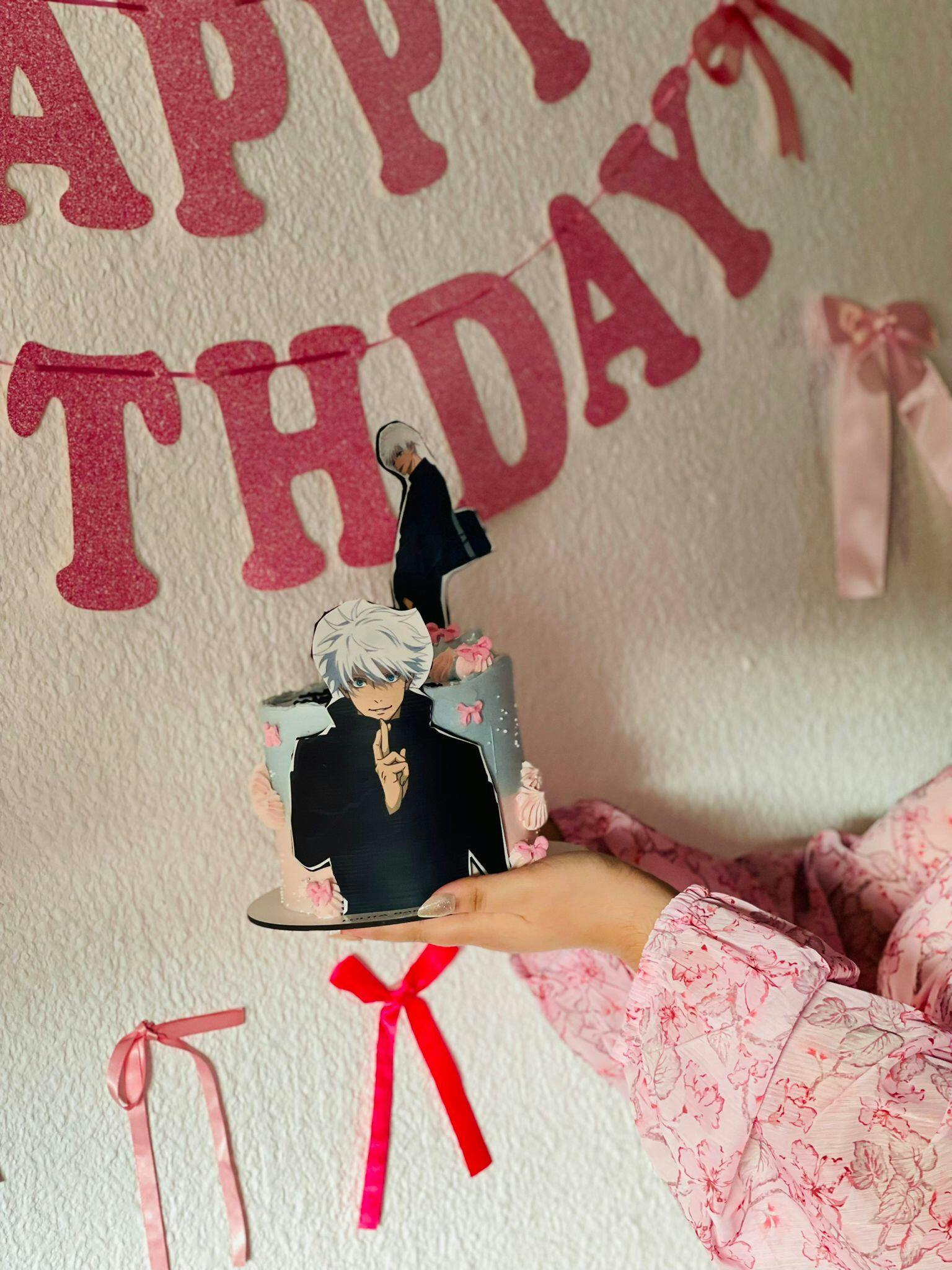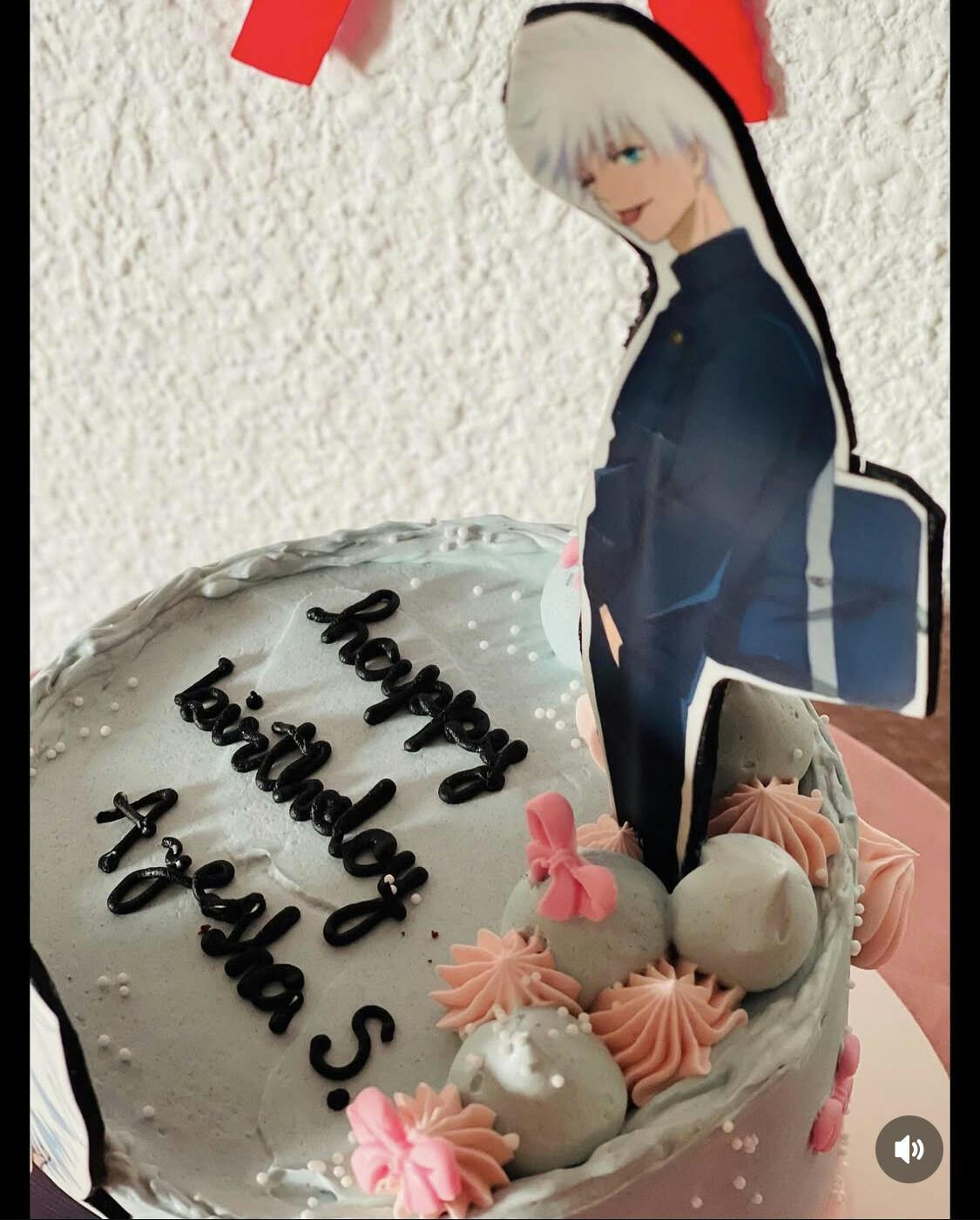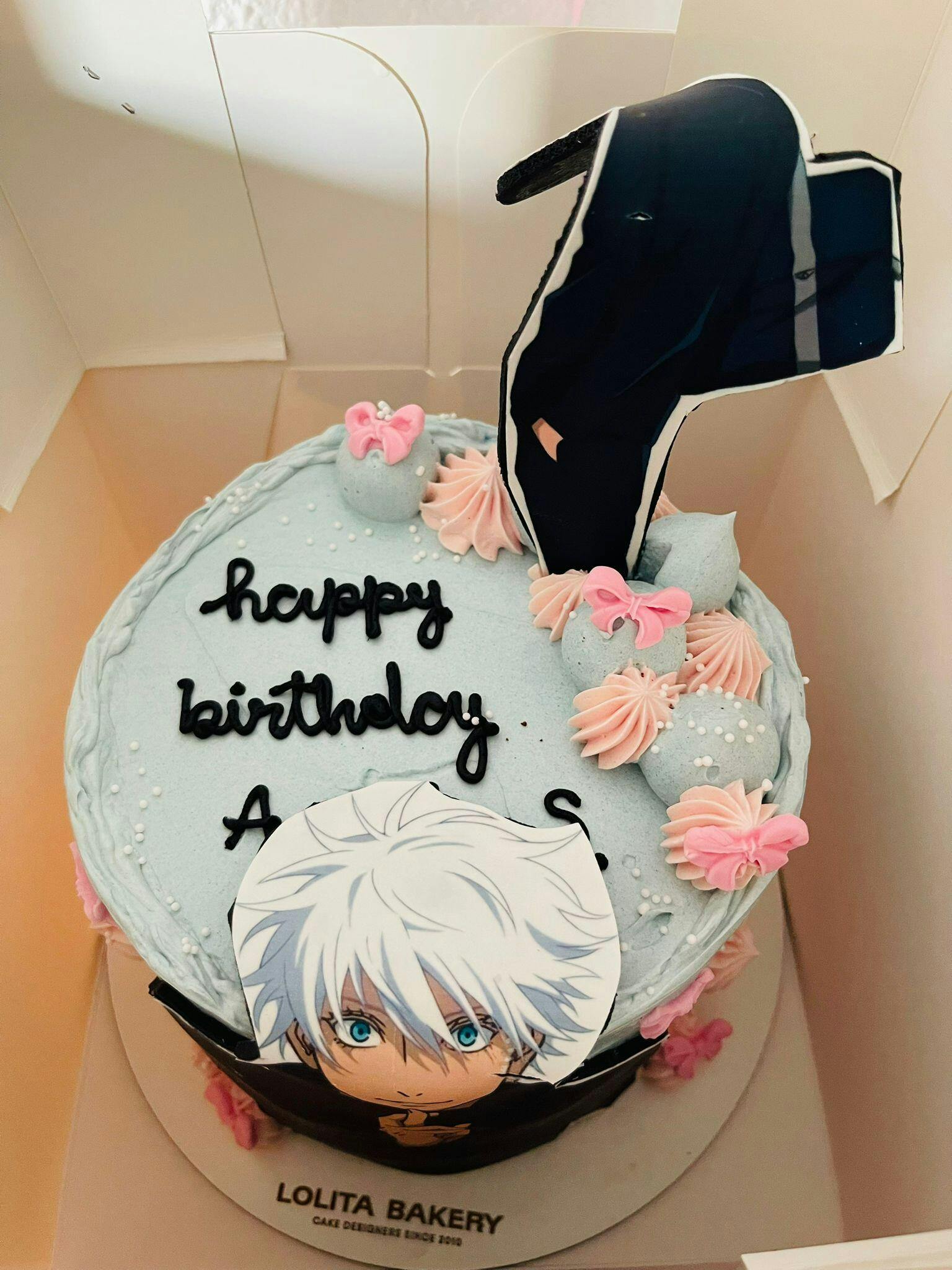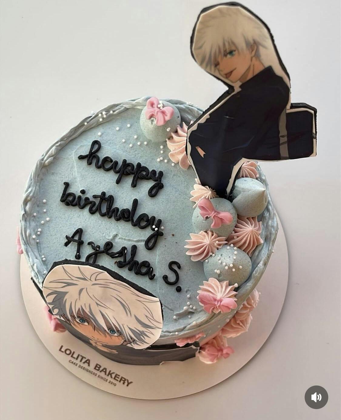 The cake was yummy 😋 and the design was also super cute ☺️ and I liked how they included all the details I asked them to do and the photos they choose were-as requested. I wanted to see gojo wihtout his blindfold and with a smile but i also wanted to be surprised so that why I didn’t send the photos myself. The only thing that disappointed me was that the shapes of gojo weren’t cut properly and that the standing gojo didn’t had a stick all the way to keep him up. Because both the photos bent over when I keep the cake out for a little while. I think putting the sticks all the way could have help prevent that.